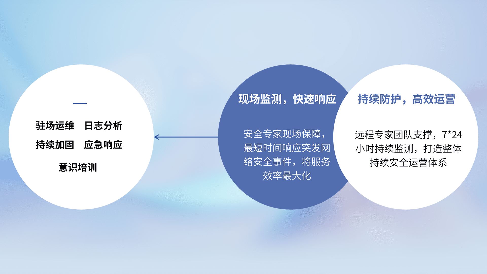 针对客户行业特性,,,,提供专属的一站式安全管理服务,,帮助客户全面感知网络空间威胁,,,通过安全专家的线上、、、线下防护支持,,,实现风险闭环,,,将安全保障常态化,,,为客户打造常态化安全运维运营服务。。
